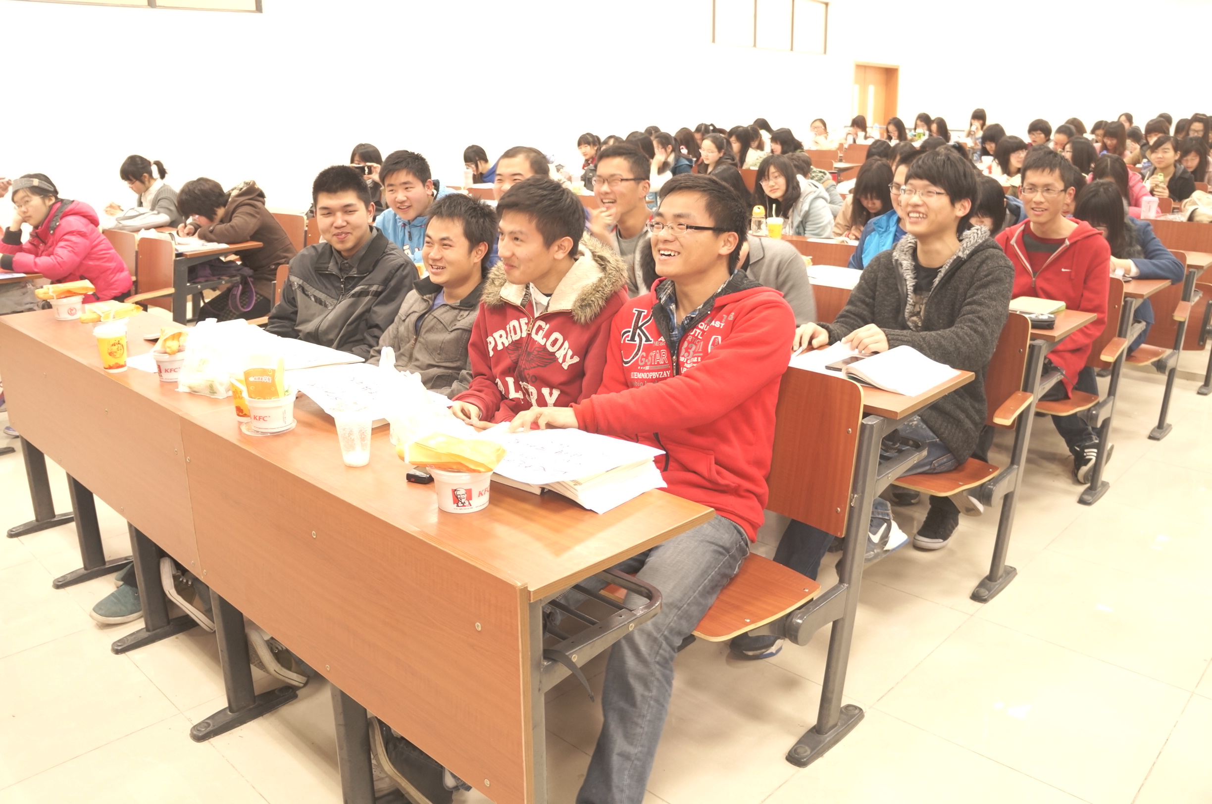 特殊的节日在重重惊喜中度过。早上7点,男生们一走进早读教室,就发现了年级中心组为他们准备的爱心早餐,伴随着黑板上“祝外院12级男生节日快乐”的大字,拉开了节日的序幕。第二轮惊喜是“魅力男生”颁奖环节,各班女生为每位男生送上了一张特制奖状,有的是男生形象漫画,有的印有男生招牌照片,奖项也根据获奖人的性格和平时表现各不相同,包括“最萌帮主奖”、“最稀有奖”、“草莓王子奖”等等,表达着班级女生对男生的美好印象和对他们闪光点的发掘。第三份惊喜礼物是抽取愿望卡,男生根据抽中的卡片可以找班级女生实现一个愿望,比如可指定女生体育课后帮忙送水擦汗,可指定女生帮买午餐并送至宿舍等等,女生表示愿意用自己的行动回馈男生平时对班级同学的关爱。最后一轮惊喜则是玫瑰派送。课间,年级每位男生都收到了一枝鲜艳的玫瑰,再次将节日气氛推向高潮,不少男生都表示是第一次收到玫瑰,显得十分羞涩。