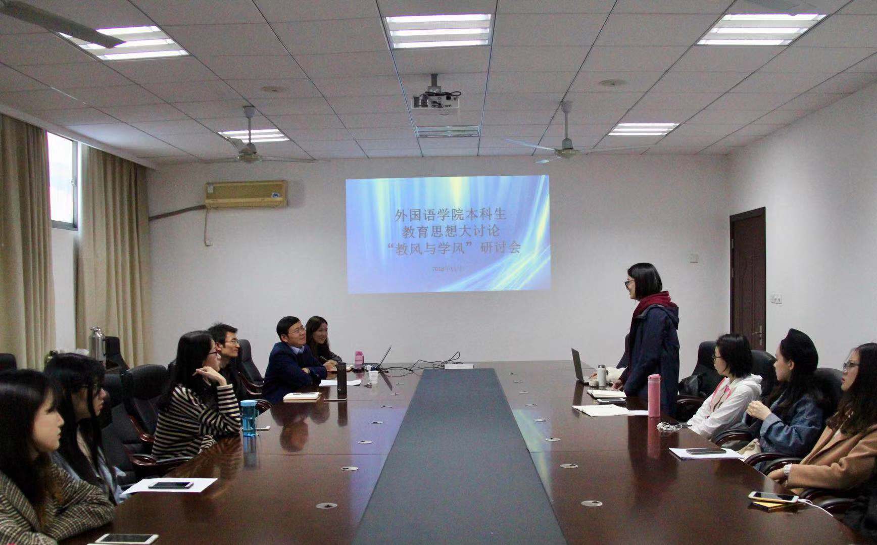 11月9日下午,澳门永利yl6776本科生各年级开展了2场教风与学风专题研讨会,英语系主任姜礼福老师、白雪花老师,日语系钟勇老师,各年级辅导员,各班班长、学习委员及学生代表参加了本次研讨会,就如何更好助力我院学风教风建设发展进行了深入的交流和讨论。