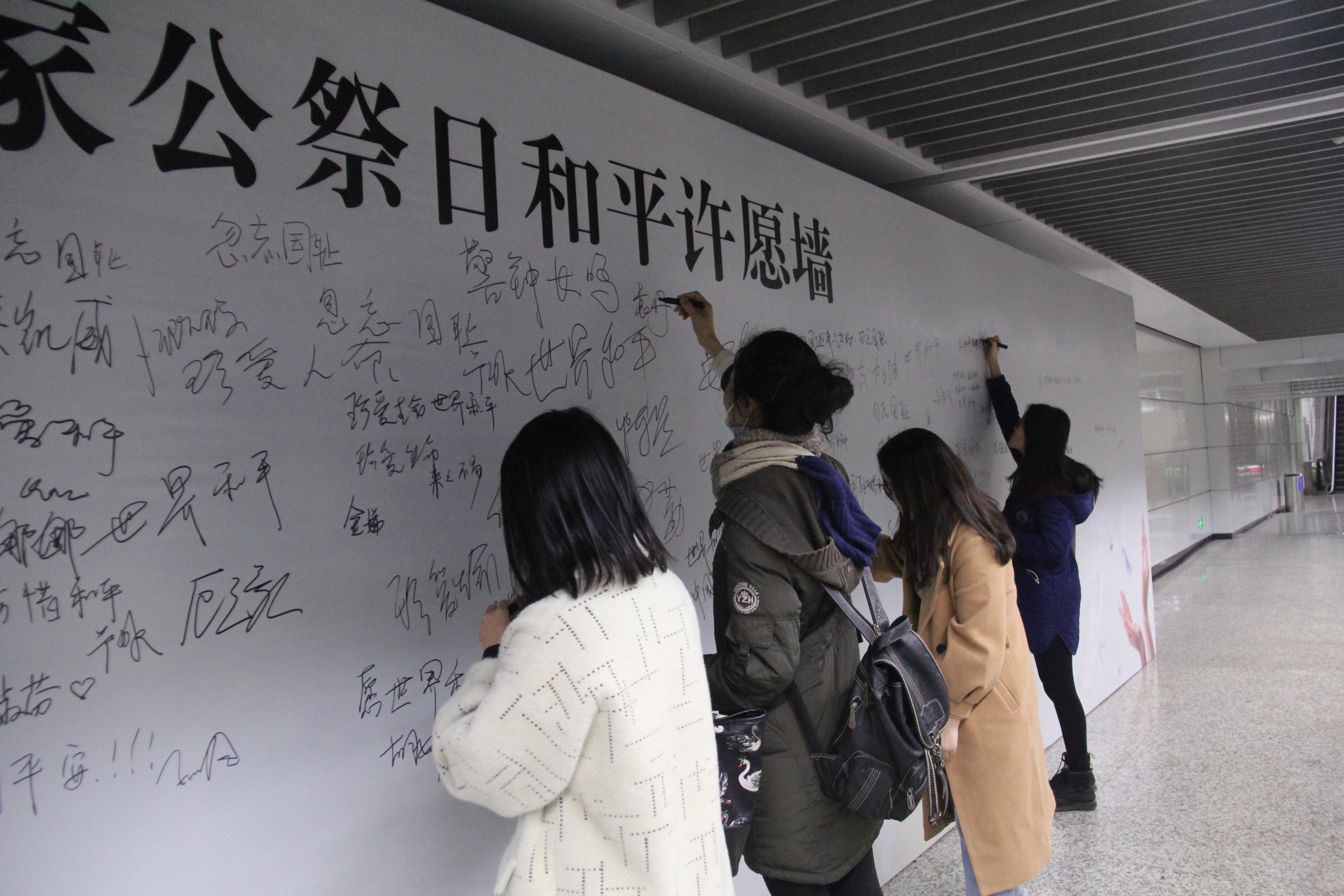 12 12月5日,澳门永利yl6776学生党支部的12位党员同学前往南京南站,参加南京大屠杀死难者国家公祭⽇“和平许愿墙”活动,悼念同胞,铭记历史,祈愿和平。 由市委宣传部等单位指导、东方卫报社主办的南京大屠杀死难者国家公祭⽇活动,在南京南站7号口的通道两侧,设立了两面“和平心愿地图”与“和平许愿墙”。来往的民众纷纷驻足,在地图上家乡位置进行许愿签名,并将家乡所在地与南京连线,寓意各地人民共同祈求和平,祝福中国。在另一侧60平方米大小的许愿墙上,写满了民众对于战争的谴责和强国的梦想,字里行间流露出的是对南京大屠杀遇难同胞的沉痛悼念与对未来的美好希冀。 澳门永利yl6776的党员同学们也执笔在许愿墙上写下寄语,一字一划都是他们对于历史的深刻感悟。之后,同学们通过现场的手机线上活动,为遇难同胞点烛祭奠,献花寄托哀思。活动结束后,同学们深有感触:中华儿女,血脉相连,休戚与共。要将今天的忧患意识将变成明天的自强不息,日后担负起祖国的未来,再不让历史的悲剧重演。 本次党日活动让同学们直面历史、触摸历史,进⼀步弘扬了以爱国主义为核心的民族精神教育,营造了牢记历史、不忘过去、珍爱和平、开创未来的良好氛围,更令同学们时时警醒,将党员精神铭记在心,从自身做起,从当下做起,不忘初心、积极进取,在学习与生活中以实际行动为党旗增光添彩,为中华民族之崛起贡献力量。学生工作