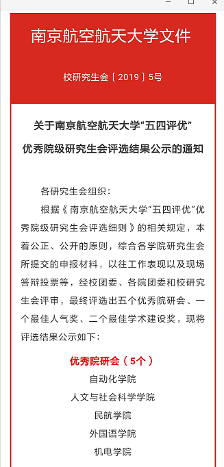 本着公正、公开的原则,综合各学院研究生会所提交的申报材料,综合工作表现以及现场答辩投票等,经校团委、各院团委和校研究生会评审,最终评选出五个优秀院研会,澳门永利yl6776在本次评比中获“优秀院研会”荣誉称号。