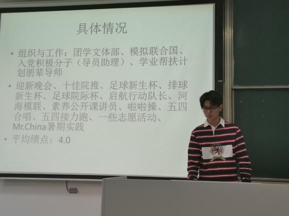 首先,辅导员盛嘉贤介绍了澳门永利yl6776素质拓展“群星计划”的实施背景和积极意义。素质拓展“群星计划”工程对学生理想信念、法律素质、体艺素质等12项素质能力进行全方位动态考察,旨在培养具有责任意识、创新精神、国际视野、人文情怀的社会栋梁和工程英才。