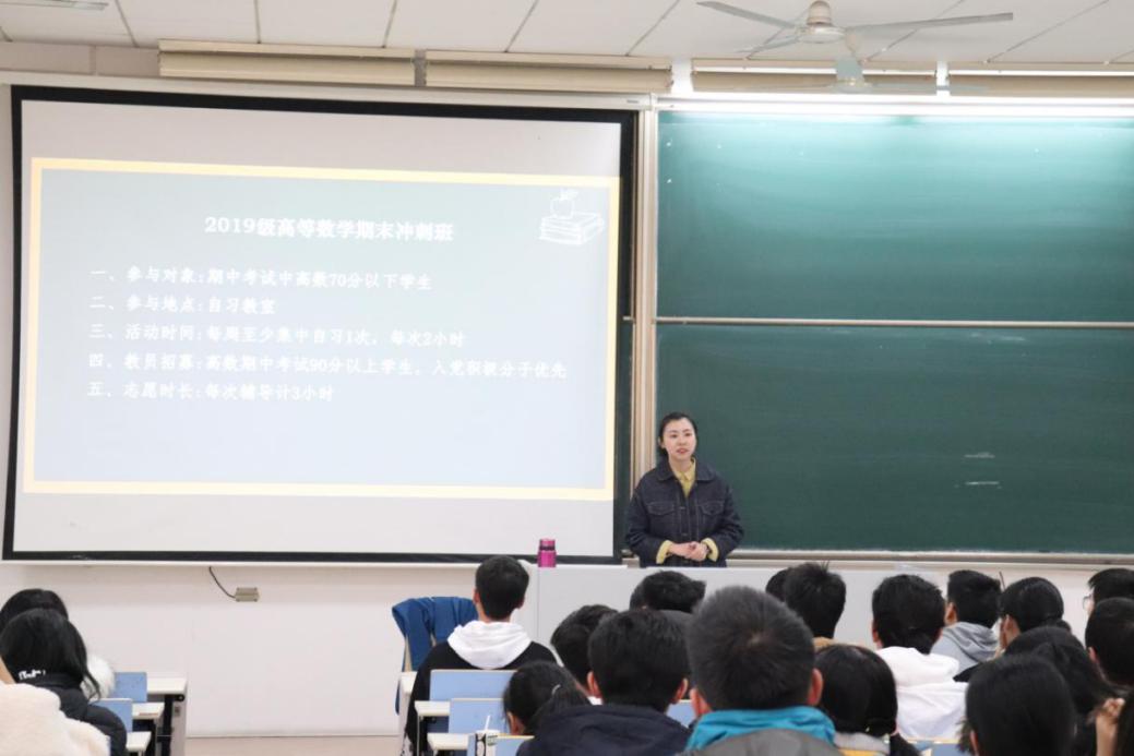 随后,针对高数学习中的共性问题,年级中心组学习部部长韩鹏进行了学习经验分享,与大家共同探讨高数学习方法以及如何合理规划学习时间。为了更好地解决高数学困问题,2019级年级中心组联合学院青协组建了高数期末考试冲刺班,由高数成绩优异的学生担任“教员”,每周进行集中高数辅导,在全院营造“你追我赶,你帮我带”的浓厚学习氛围。