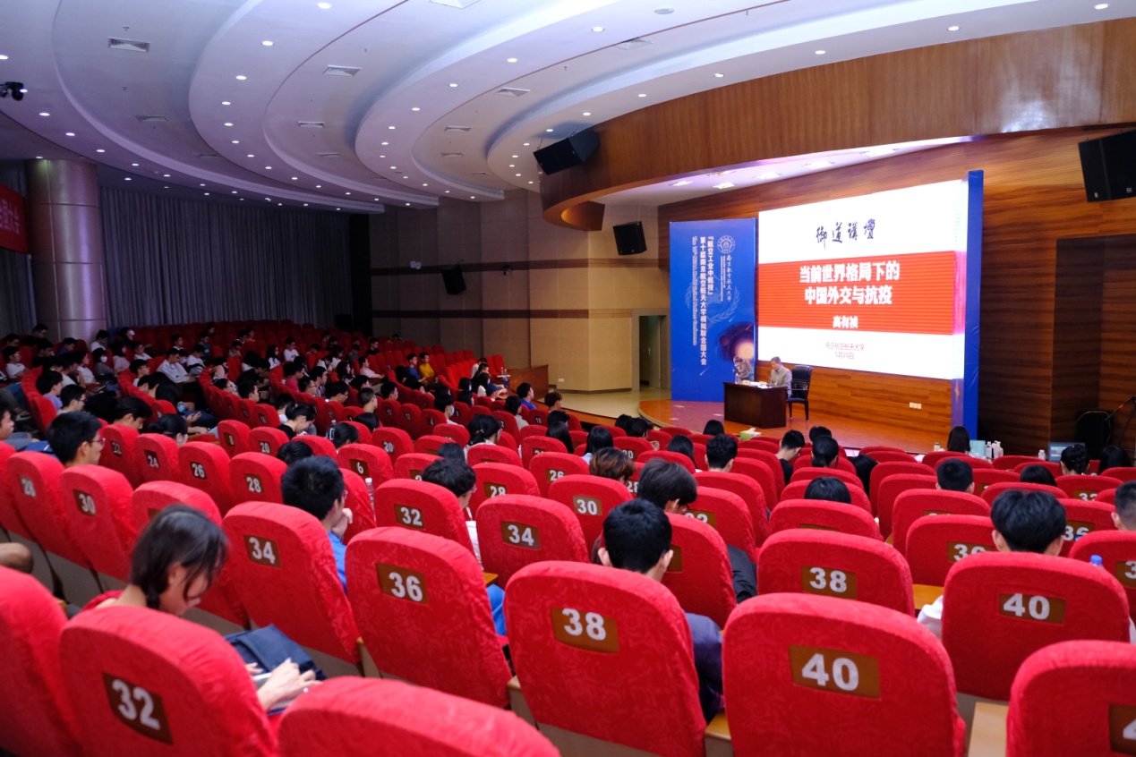 在两个小时的讲座中,高有祯大使以风趣幽默的语言,以一个个生动鲜活的案例,展现了老一辈外交家的初心使命,向同学们讲述了中国特色大国外交的作为与担当。他寄语当代青年在新时代要有所作为,向世界讲好中国故事,响亮发出中国声音!