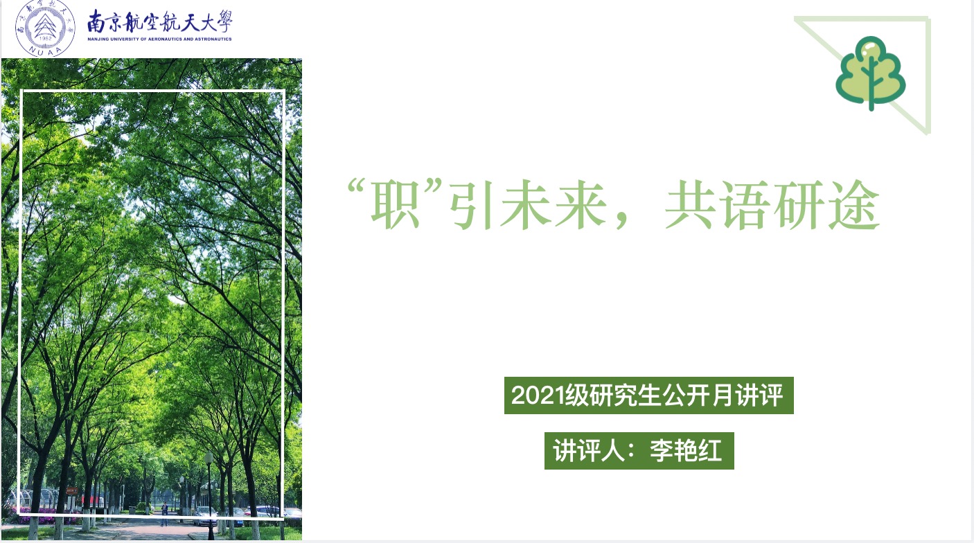 本次公开月讲评旨在引导研一学生在未来升学、就业方面提前做出规划,帮助新生明确研究生不同阶段的重点,引导学生提升专业能力,强化研究生学风建设。希望同学们更进一步明确未来发展的方向,为自己的研究生职业规划打下坚实的基础,研究生生涯中不留遗憾、笃定向前。