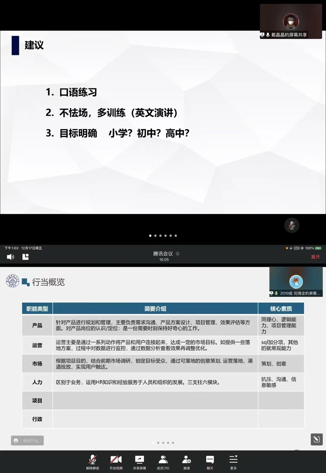 12月17日,澳门永利yl6776面向2021级研究生开展了“职”引未来,共语研途线上公开月讲评,本次月讲评由研究生兼职辅导员李艳红主持召开,2021级全体同学参加,旨在为研一同学职业规划提供建议与指导。