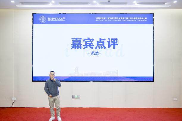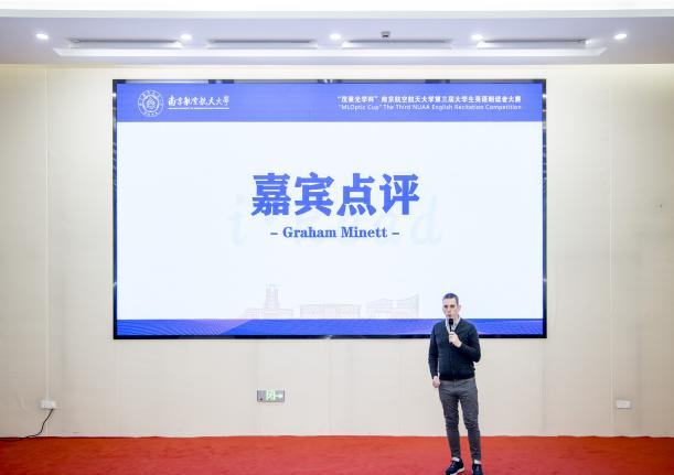 嘉宾点评环节同样精彩纷呈。范浩以流利的英语对赛事进行了精辟总结,他鼓励选手们要持续精进语言技能,强化口语实践,并积极寻求跨领域知识的融合,努力成长为具有全球视野的知行合一的复合型人才。外教Graham Minett在点评时由衷赞叹,他表示选手们优异的表现与现场生动活泼的文艺节目相得益彰,共同呈现了一场高质量的活动,让他深刻感受到了南航学生的无限活力与创造力。