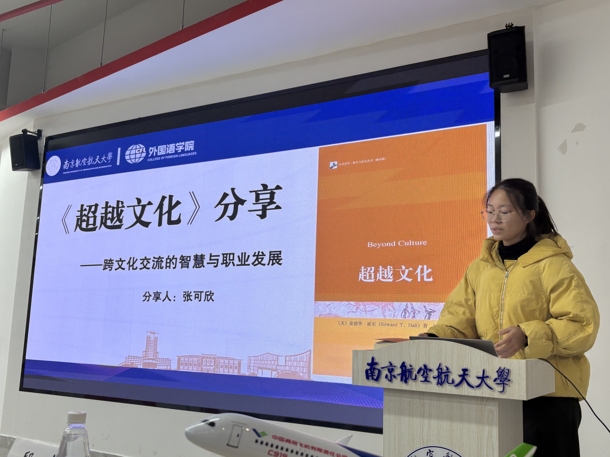 随后,“书香校园·共品经典”师生读书会环节,范浩院友结合学生时代的求学历程与创业路上的实战感悟,强调了“胸怀大志”与“脚踏实地”并重的人生哲学,并在互动环节中与同学们真诚交流,为在座学子带来深刻启发。此外,范浩院友向在座学生推荐了《The CultureMap》一书,希望后辈学子们从中找到一把解锁文化差异、提升跨文化沟通力的钥匙。葛建平院友娓娓道来她与《航空航天概论》的故事以及在出版行业的职业体悟,展现出知识传播者的责任与情怀。两位院友的倾情分享,真挚而充满力量,赢得了全场热烈的掌声。澳门永利yl67762025级英语复合创新班的张可欣同学分享了《超越文化》一书的阅读体悟。她从理论框架延伸到现实案例,并结合外语人的职业路径展开深入思考,充分展现了外院学子对文化差异的敏锐感知以及将语言能力转化为跨文化实践的应用潜力。