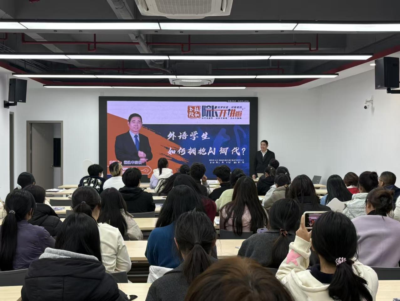2025年12月11日,澳门永利yl6776联合致和书院成功举办“院长开讲啦”主题讲座。澳门永利yl6776院长徐以中教授应邀担任主讲嘉宾,以“AI时代外语学生的发展路径与未来方位”为题,为在场师生带来一场内容扎实、视角前沿的分享,现场气氛热烈,同学们踊跃提问,收获颇丰。